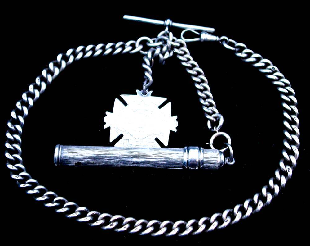 - ◎古◎★極上★太い銀無垢チェーン★1890年頃★高級ペンシルホルダー&装飾フォブ付★約73.1g★懐中時計用チェーン