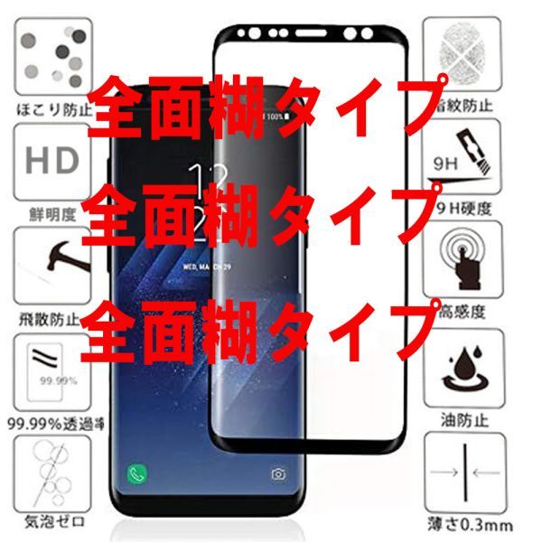 > 全面粘着 Galaxy S9 SC-02K SCV38 3D用曲面 強化 ガラス フイルム 全面糊付きタイプ 液晶 保護 画面 シール シート カバー 黒 ブラック