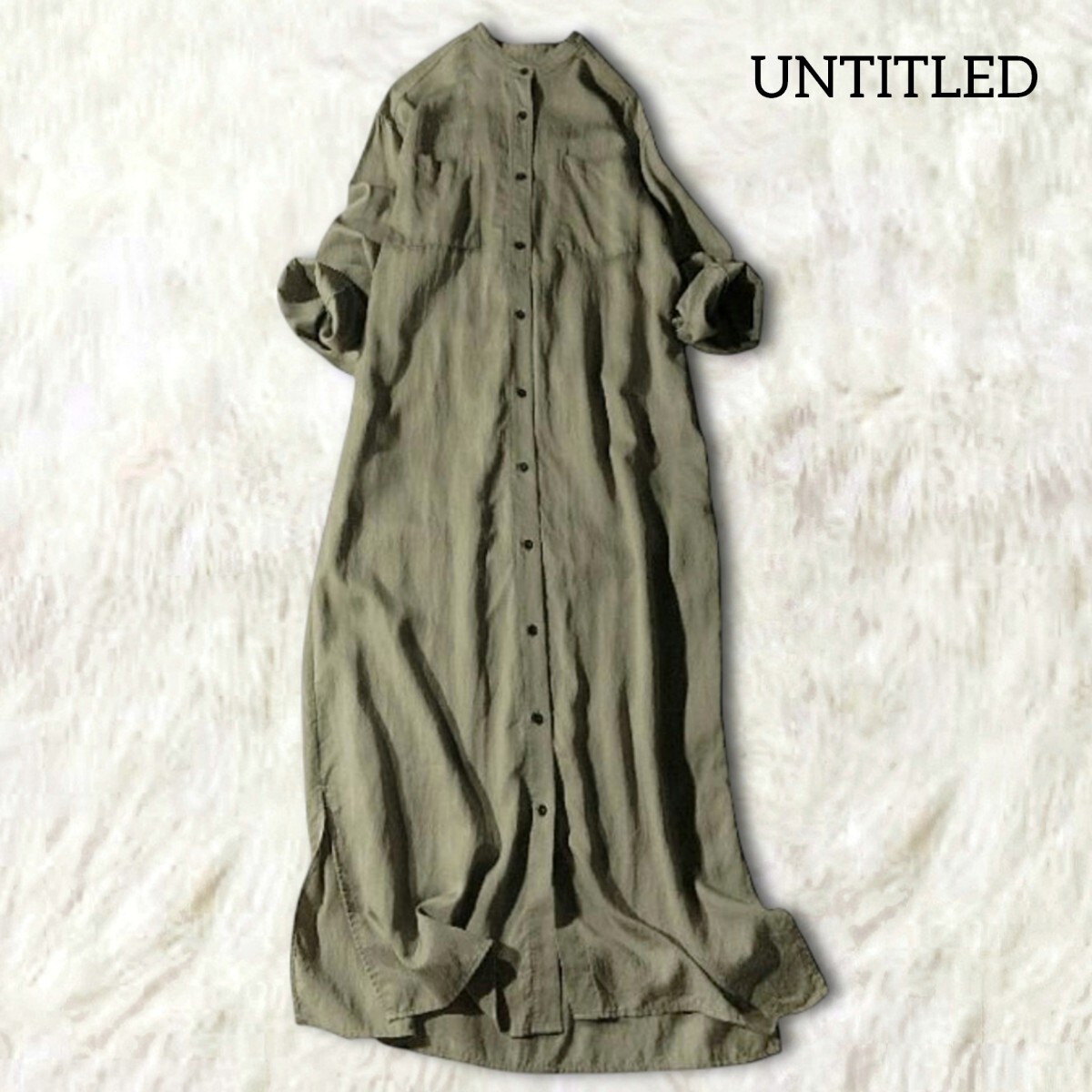 > 74 【UNTITLED】 アンタイトル シャツワンピース ロングワンピース M カーキグリーン 無地 シンプル 長袖 バンドカラー 秋冬 ガウン 羽織り