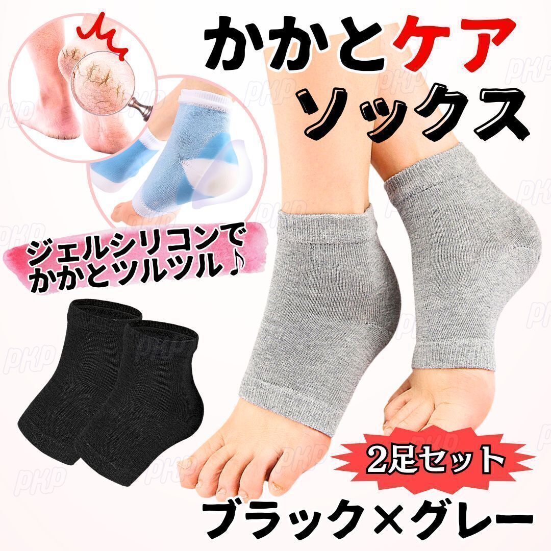 - 712-84B かかとケア ソックス かかと 角質 保湿 オープントゥ 靴下 フットケア シリコン ジェル 潤い ひび割れ ブラック グレー 2足組 ①