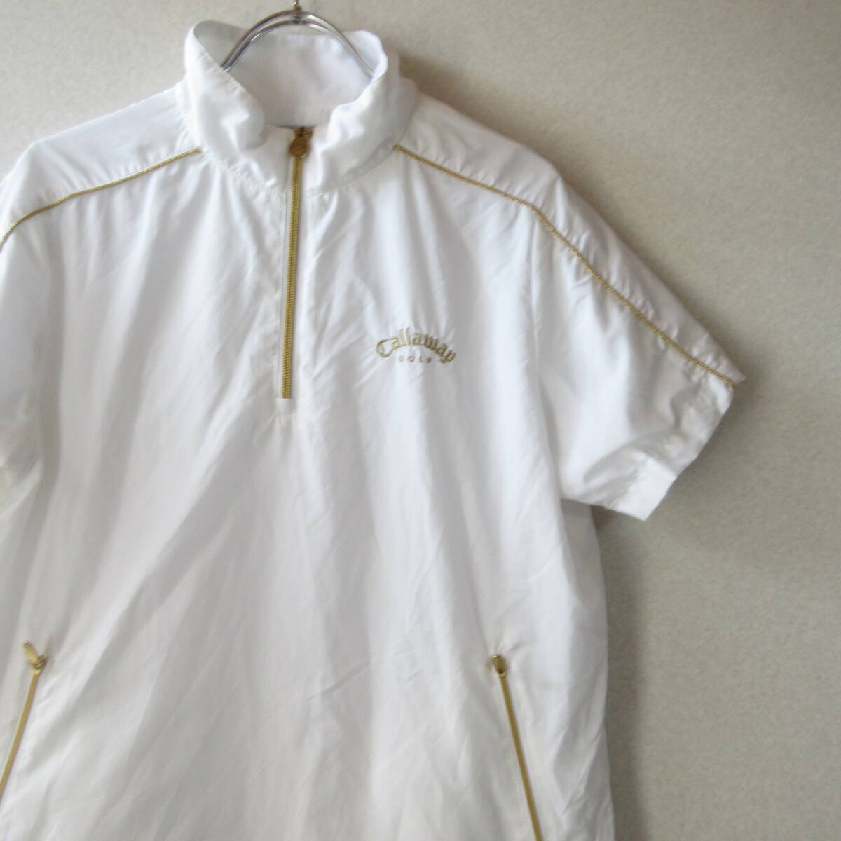 - ○美品 callaway キャロウェイ◆ゴルフウエア 半袖 ナイロン ハーフジップシャツ 日本製◆レディース ホワイト/ゴールド Mサイズ
