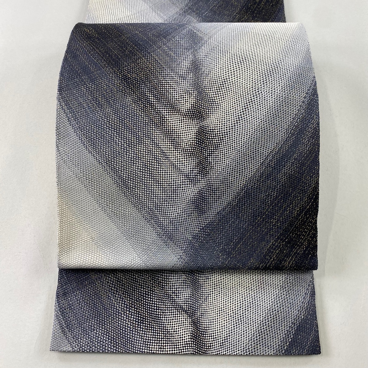 - 袋帯 美品 秀品 幾何学 金銀糸 紺色 全通 正絹 【中古】