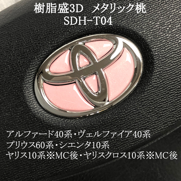 > トヨタ ステアリング エンブレムシート メタリック桃 SDH-T04 ハンドル用 樹脂盛立体3Dシール ステッカー 取付け簡単 TOYOTA ZEROWIN