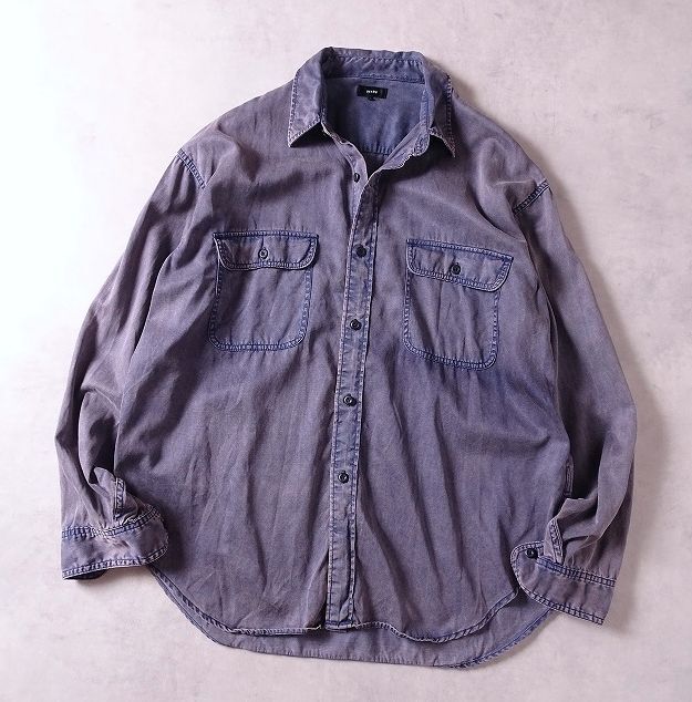 - BEAMS ビームス faded work shirt 洗い加工 フェード ワーク シャツ フェード ヴィンテージ感 ワイドフィット メンズ (L) ネイビー r-819