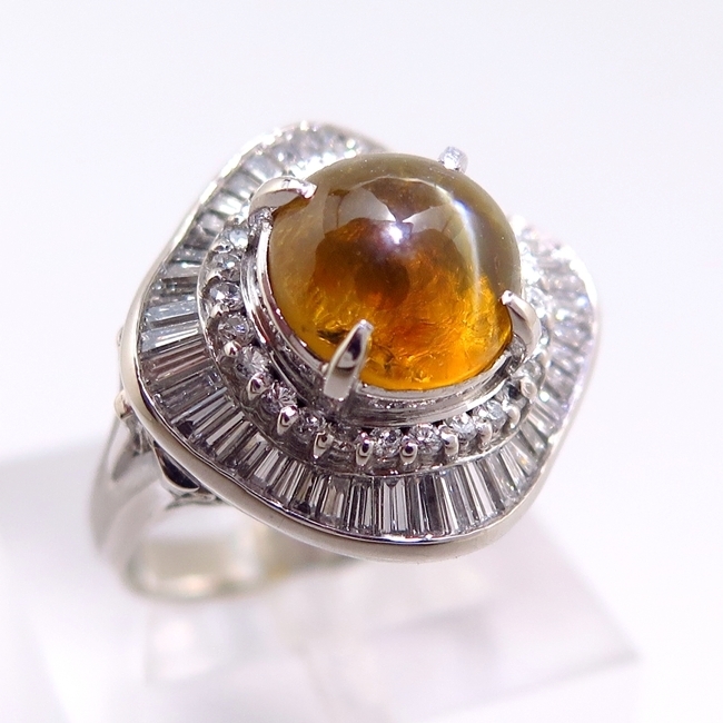 - Pt900 プラチナ リング 指輪 クリソベリルキャッツアイ5.320ct ダイヤ0.970ct 14-号 ソーティング付【中古・新品仕上】/30471/10015087