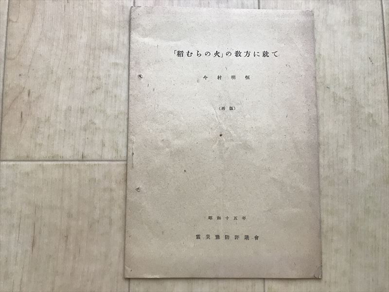- 20 7550 戦時下『「稲むらの火」の教方に就て』今村明恒著/震災予防評議会/昭和15年 地震学者 地震予知 関東大震災 小冊子