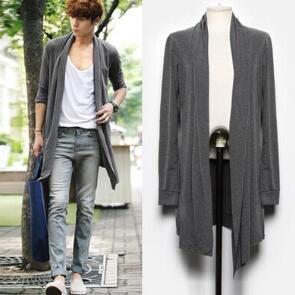 - 新品★メンズ カーディガン 薄手 ニット ロングカーディガン 棉 コットン 長袖 グレー M-2XL