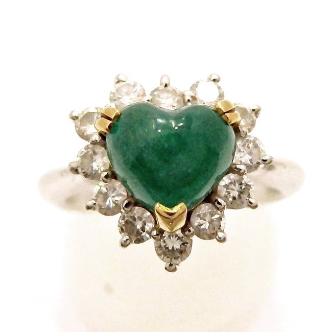 > K18/Pt900 ★リング ◆エメラルド1.613ct ◇ダイヤモンド0.190ct ●10号 【中古】 /21655 10004994