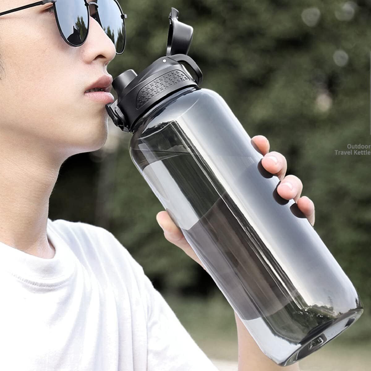 > TSQIBU ボトル 水筒 大容量 600ml 超軽量 漏れ防止 携帯便利 耐熱100℃熱湯対応 キャリーハンドル付(600ml Black)