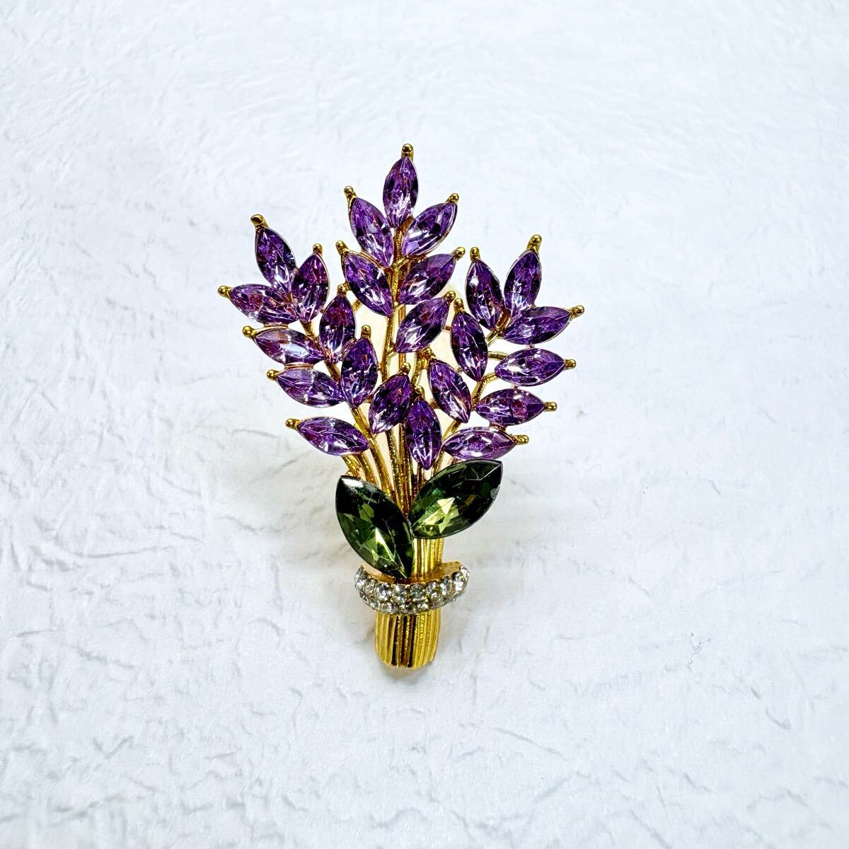 - 【ブローチ】ラベンダーのブーケ お花 ラインストーン 09-2