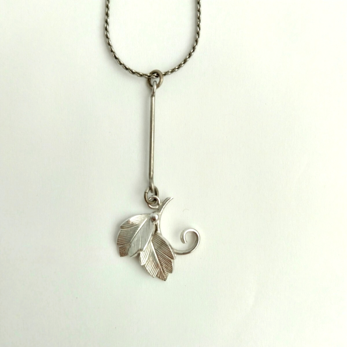 - 昭和レトロ 蝶柄 蝶型 バタフライ リーフ柄 葉っぱ柄 Y字 シルバー ネックレス レトロ ヴィンテージ 送料無料