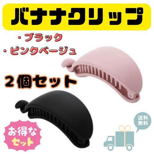 - 020I25 バナナクリップ ヘアアレンジ ブラック ベージュ 髪留め セット