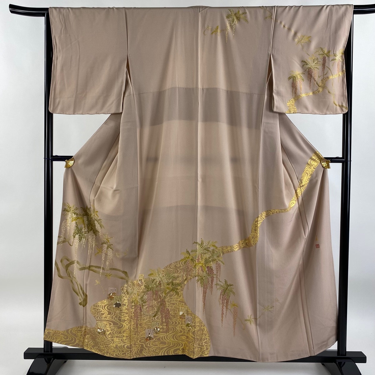 - 訪問着 身丈157cm 裄丈66.5cm M 袷 松尾光琳 落款 藤 かるた 金糸 金彩 ピンクベージュ 正絹 美品 秀品 【中古】