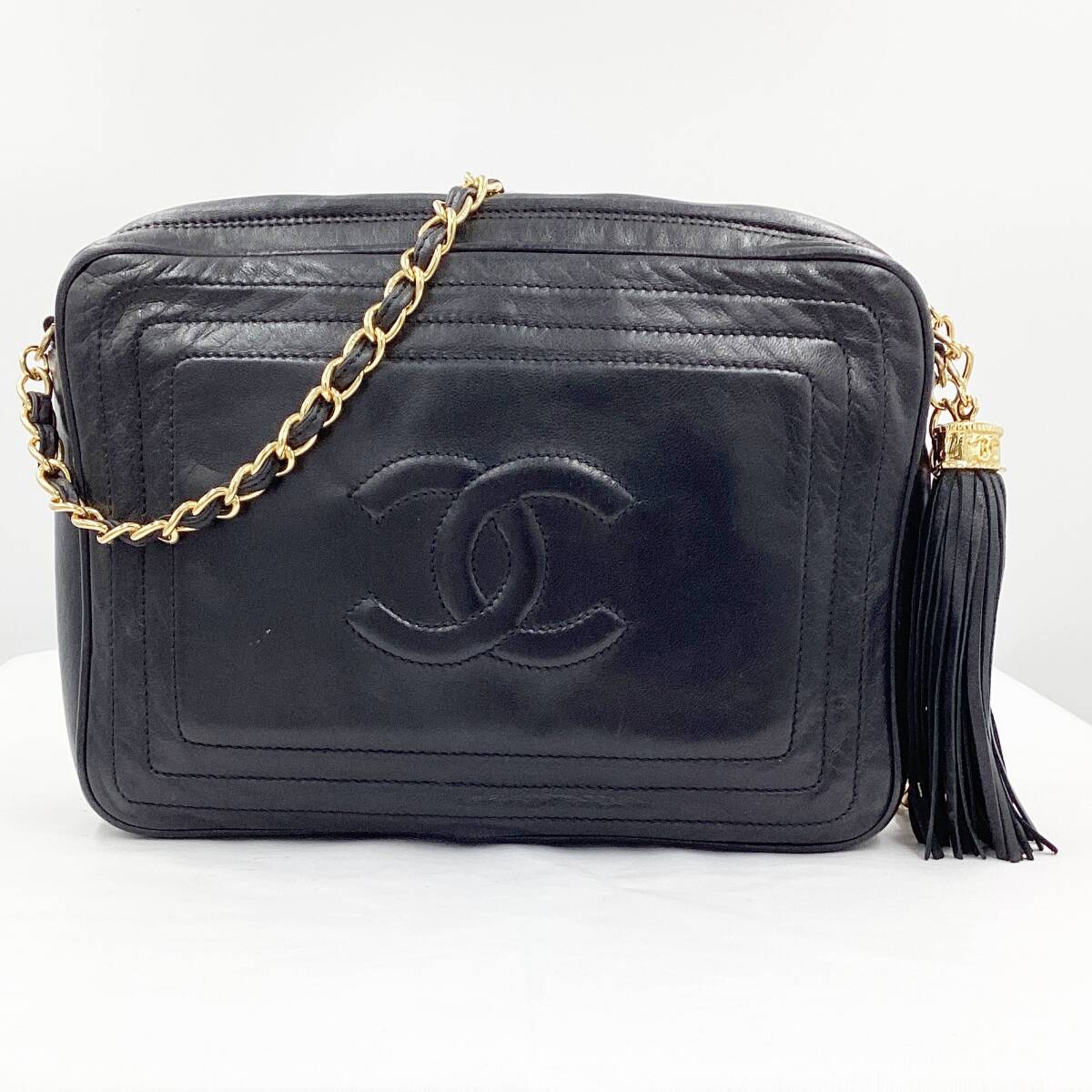 - 送料無料 中古A シャネル バッグ CHANEL チェーンショルダーバッグ ラムスキン ココマーク フリンジ ブラック×ゴールド金具 149876