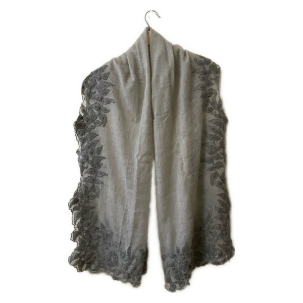- ファリエロサルティ Falierosarti ストール(ショール) - ウール、シルク グレーベージュ×黒 刺繍 美品 マフラー