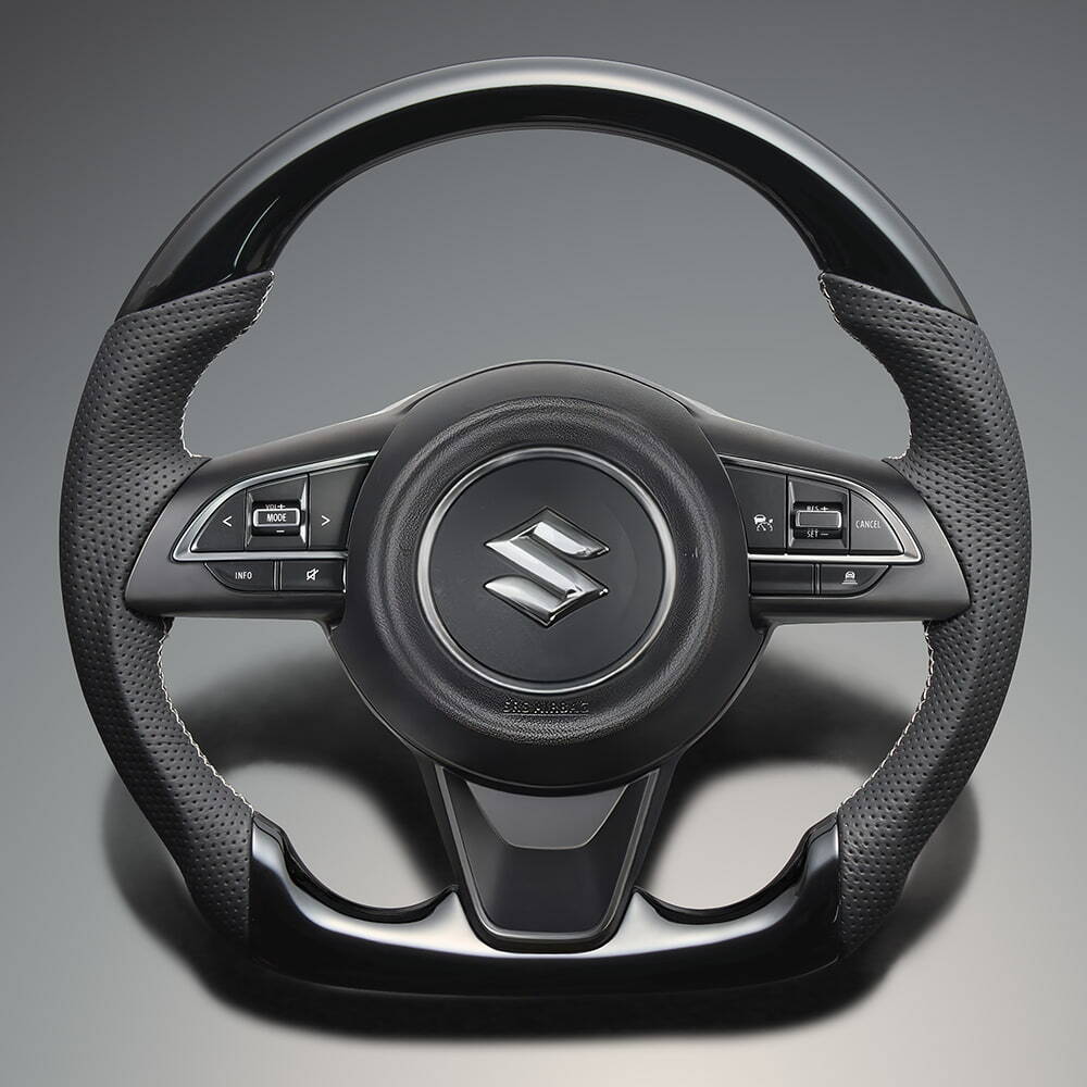 - FEGGARI スイフトスポーツ ZC33S ステアリング ピアノブラック x PVCレザー(ダークグレー) x シルバーステッチ / LS289 フェガーリ