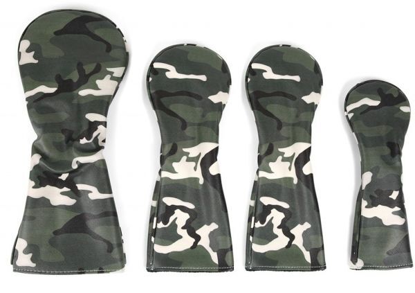 > 【未使用】 ゴルフヘッドカバー4個セット 迷彩グリーン ウッドカバーセット DR1.FW2.UT1