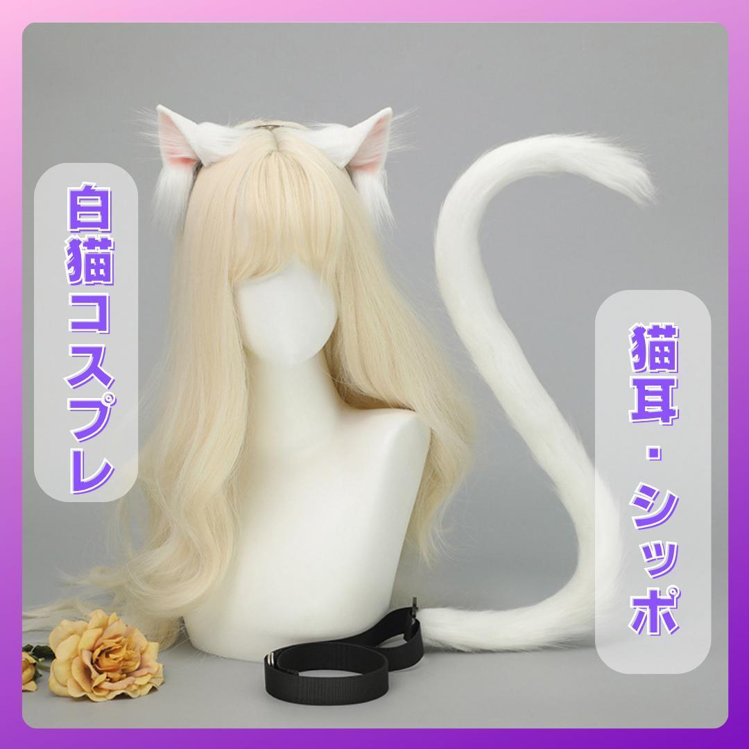 - 白猫耳&しっぽセット ハロウィン コスプレ ネコ ねこ 仮装 イベント 1161
