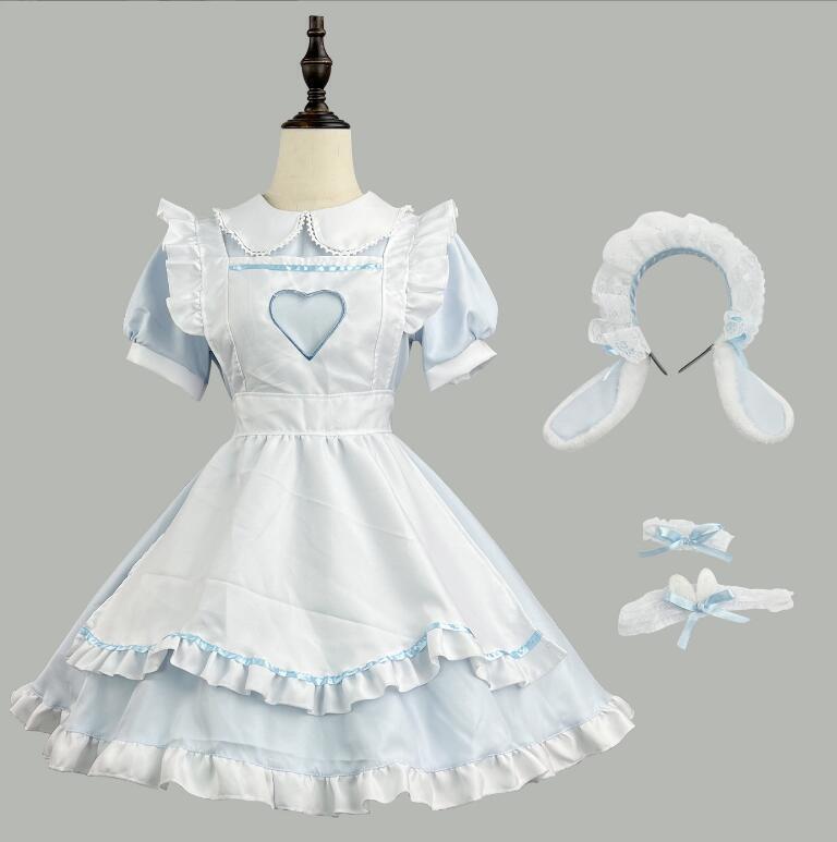 - 新入荷ウサギ耳カチューシャ メイド服 5set 5L ブルー