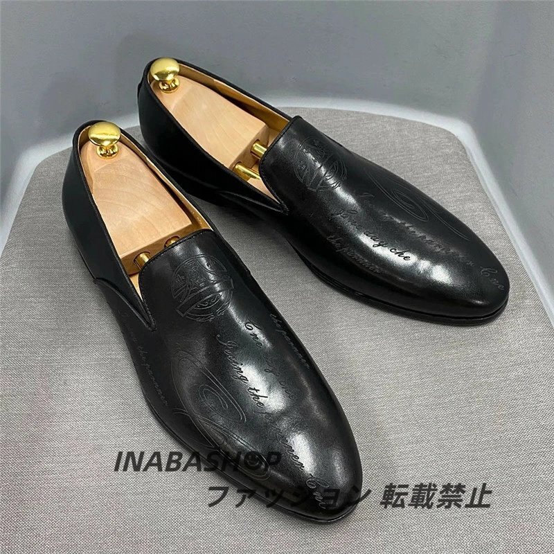 - ローファー 本革靴 ヴァンプローファー イタリア風 ビジネスシューズ 英文字柄 ドレスシューズ 革靴 紳士靴 メンズ 24.5cm-28cm