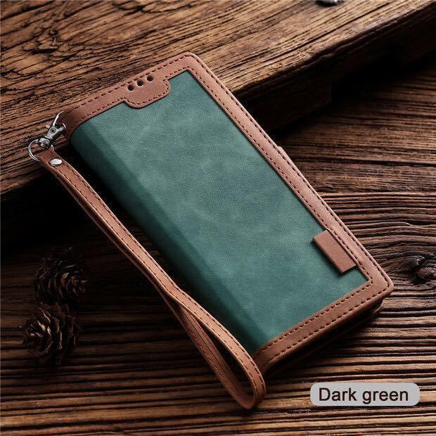 - iphone7plus ケース iPhone8plus レザーケース アイフォン8プラス カバー 手帳型 カード収納 グリーン
