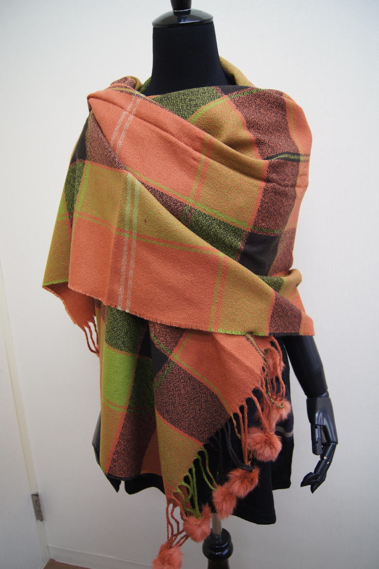 - SALE☆カシミア100%ぽんぽん付き”haymarket”緑朱色〇*:..azu00c