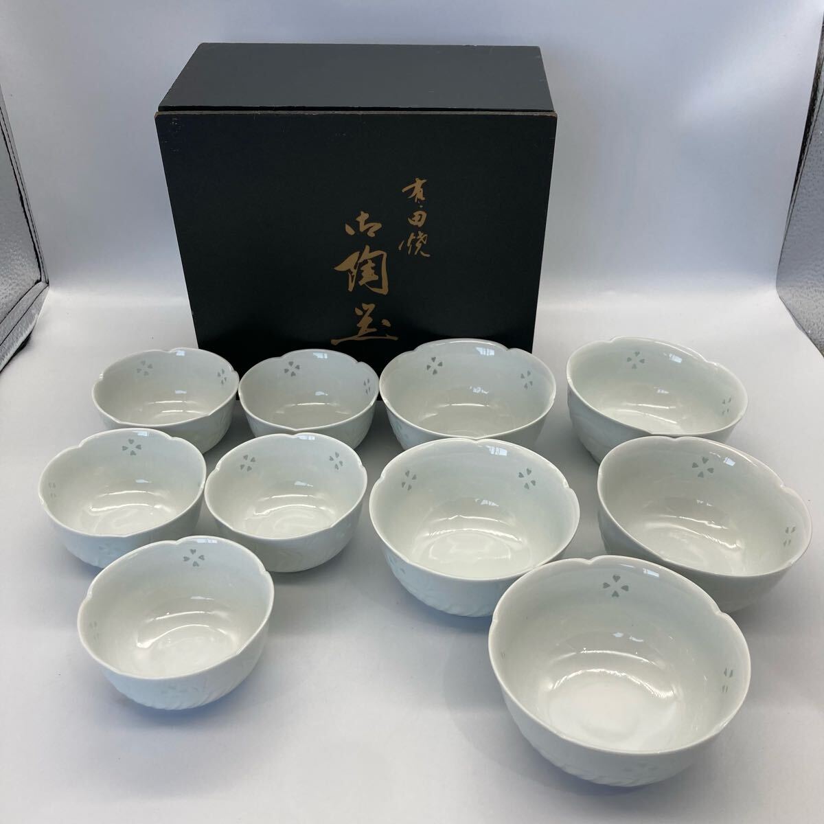 > M0823701B 有田焼 清秀窯 蛍焼 透かし 小鉢 中鉢 陶器 小皿 中皿 器 鉢揃 鉢 前菜皿 ほたる彫 和食器 焼物 工芸品 当時物 中古品 現状品