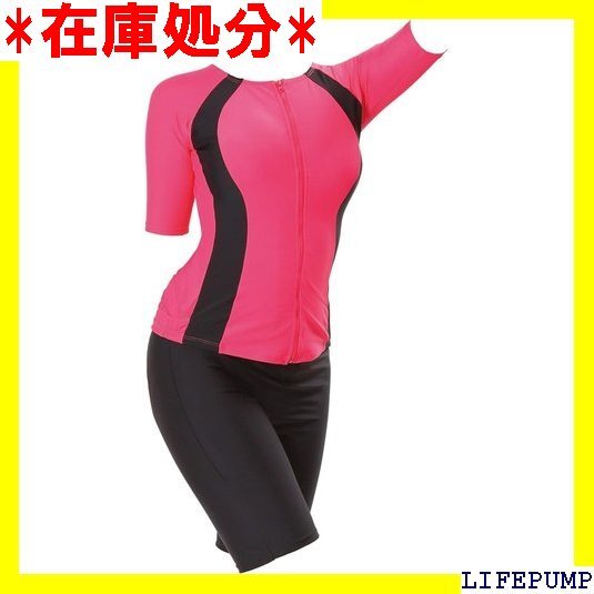 - 帽子付きフィットネス補正水着 半袖タイプ ピンクブラック 3L~4L 1022