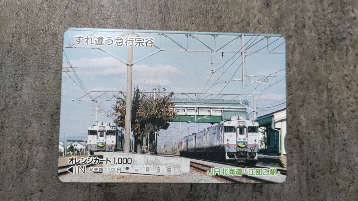 - 【送料込】【1穴使用済】江部乙駅発行「すれ違う急行宗谷」オレンジカード