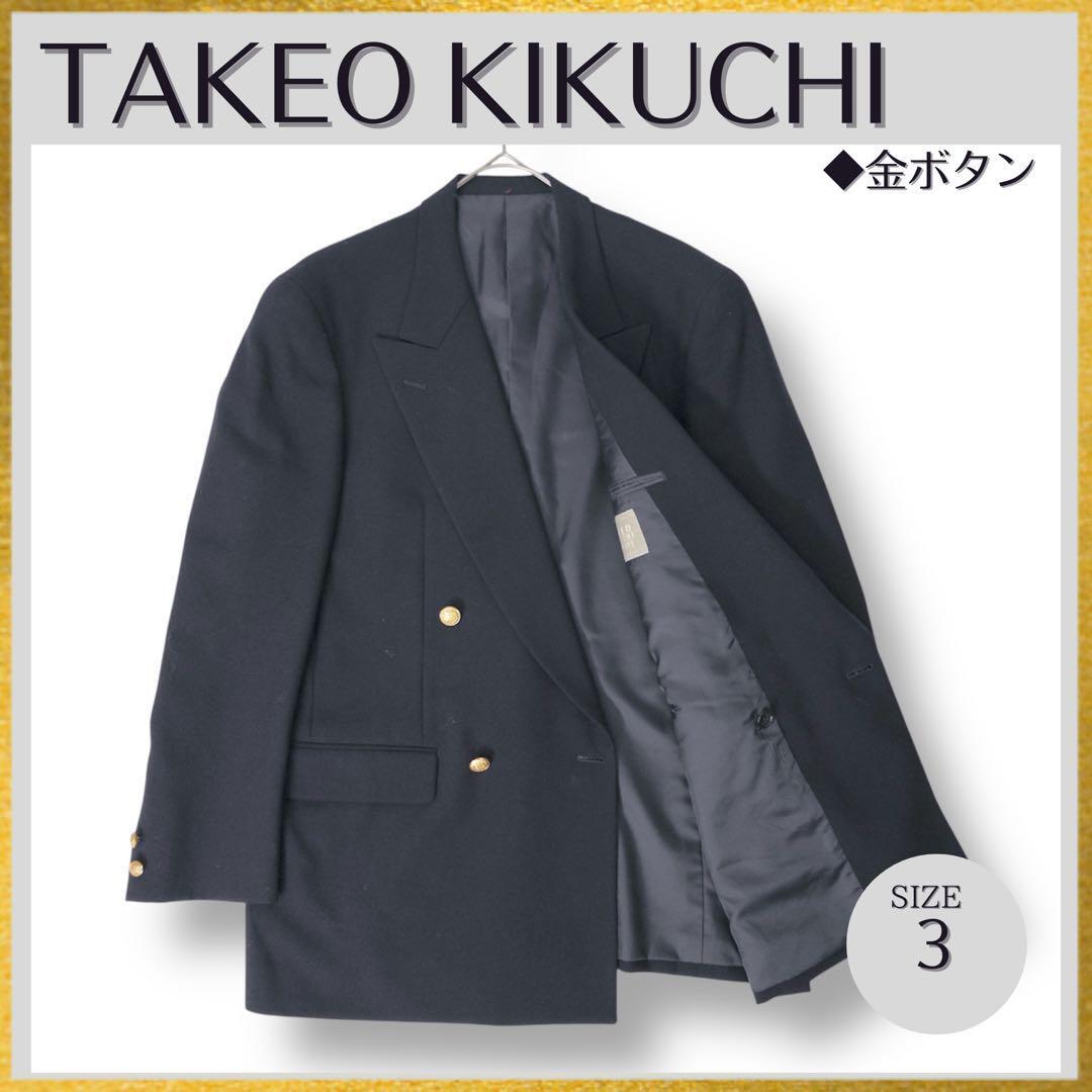 - 【洗練の一着】美品 TAKEO KIKUCHIタケオキクチ 紺ブレ金ボタン ウールダブルテーラードジャケット アンコン サイズ3(L) 1000円スタート