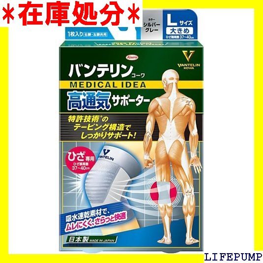 - バンテリンサポーター 高通気タイプ ひざ専用 大きめ/Lサイズ ひざ頭周囲 37~40cm シルバーグレー 1363
