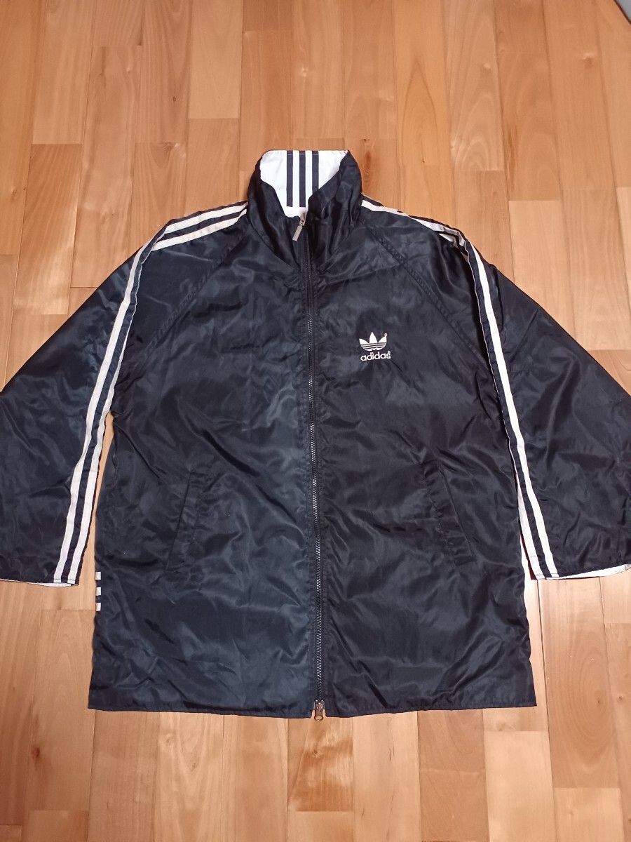 - adidas オールド アディダス リバーシブル ナイロンジャケット ブラック×ホワイト トレフォイル サイズ表記なし XL 程度