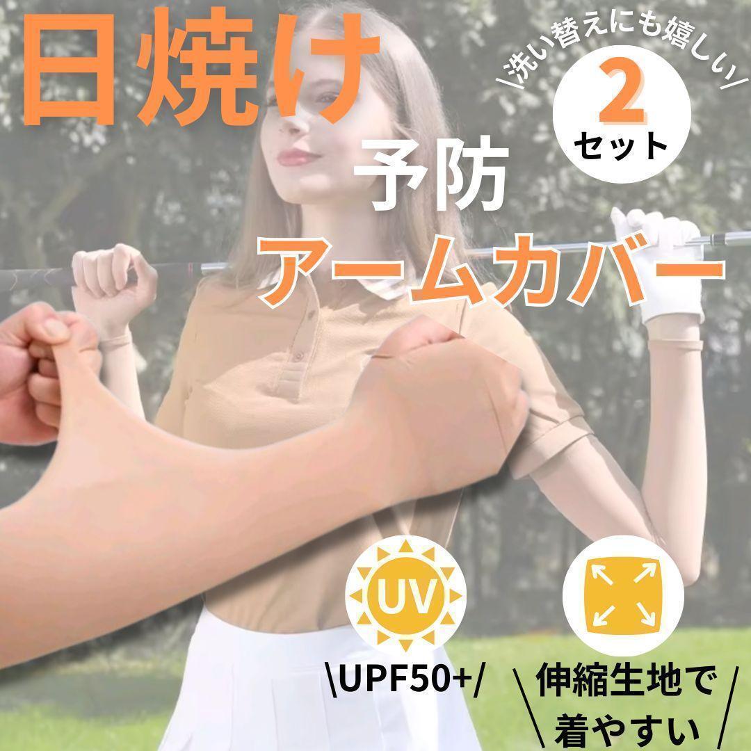 > アームカバー ベージュ 肌色 2組セット 4枚入り ゴルフ 運転 スポーツ 日焼け 紫外線予防 伸縮生地 アウトドア テニス