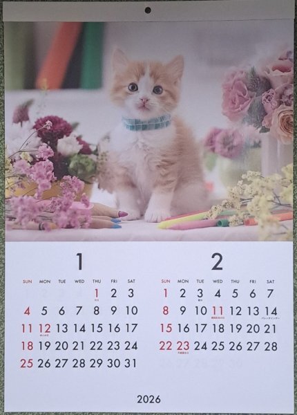 - 【すぐに発送 大判 大きい カレンダー 可愛い 「子猫」:B3:52x36cm】★2026年★壁掛け 猫・ねこ・ネコ:12か月/6面★暦:No1
