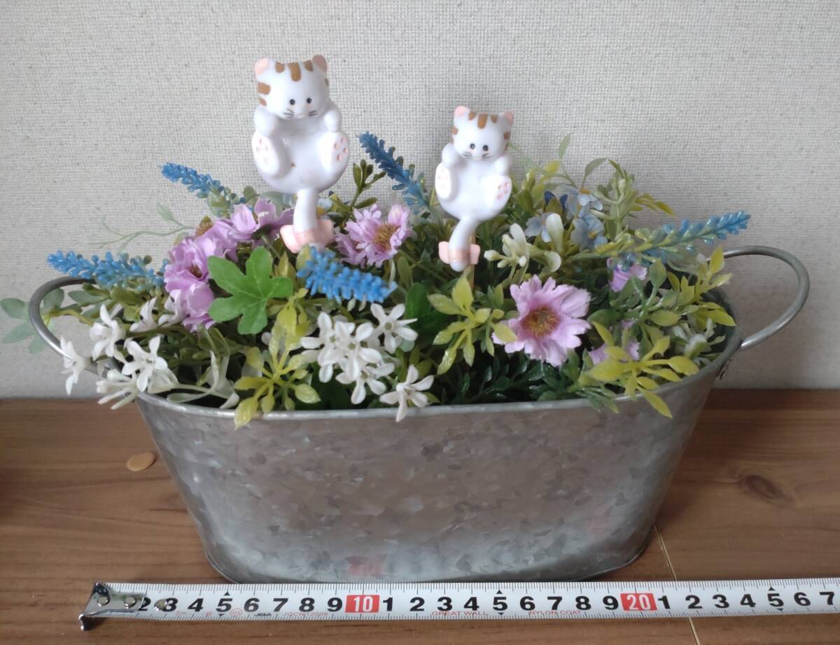 - ☆☆ フラワーポット ハンドメイド アレンジ 寄せ植え ガーデンピック 猫 ブリキ缶 ☆