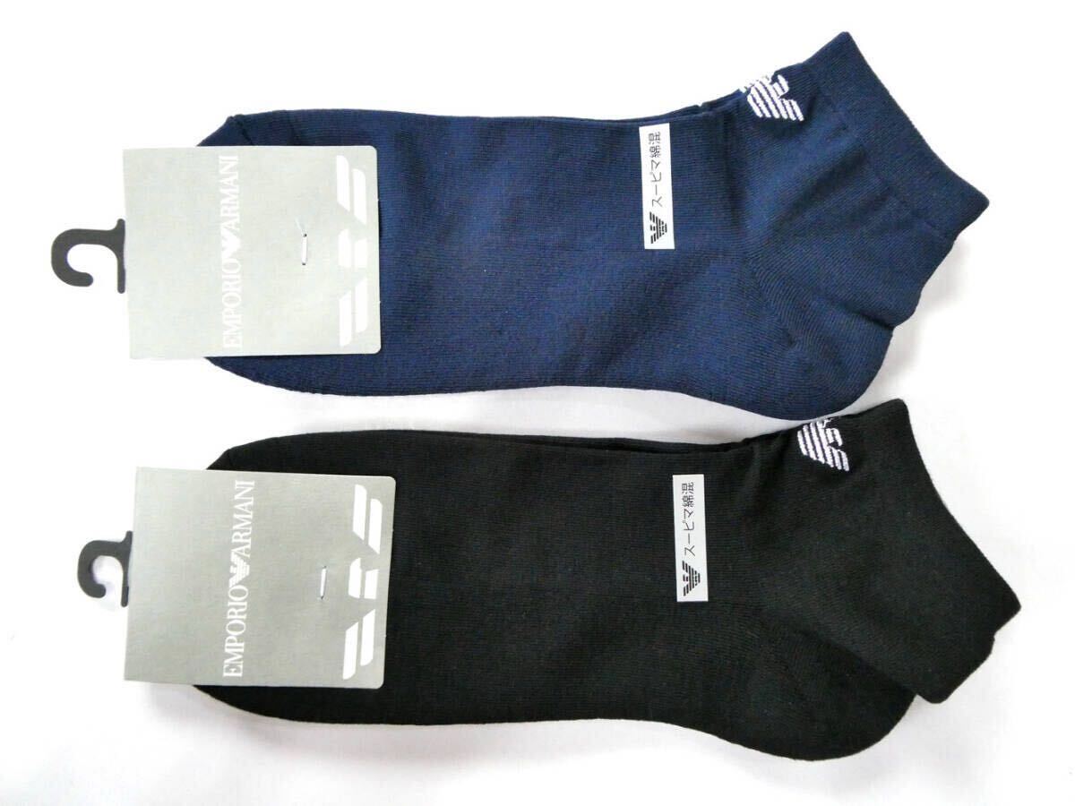 - エンポリオアルマーニ新品!2足セット マーク付きスニーカーソックス 27-29cm黒紺 送料無料 足底パイル靴下