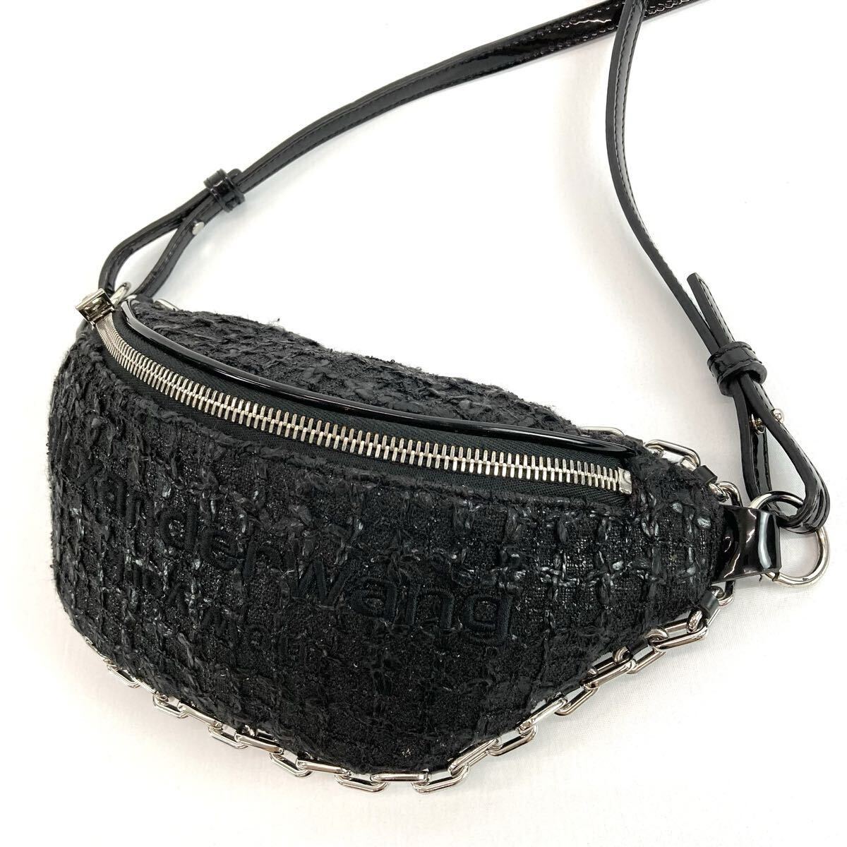 - Alexander Wang アレキサンダーワン ファニーパック ツイード×エナメル チェーン ウェストバッグ ポーチ ボディバッグ ブラック