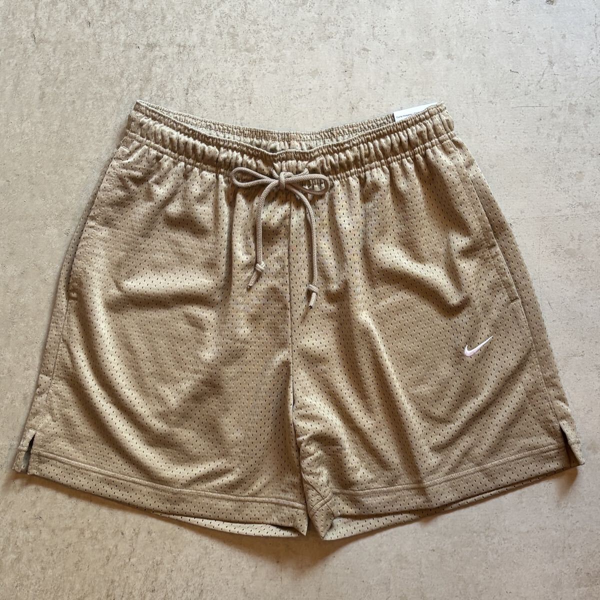 > 【新品未使用】NIKE ナイキ メッシュショーツ ハーフパンツ 短パン ベージュ メンズ XL スウッシュ ロゴ 刺繍 ワンポイント スポーツ 正規