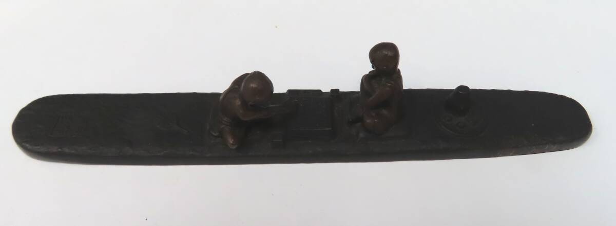 - #89348 青銅製文鎮 「勝負」 下尾治彦作 将棋 置物 書道具 文房具 美術品