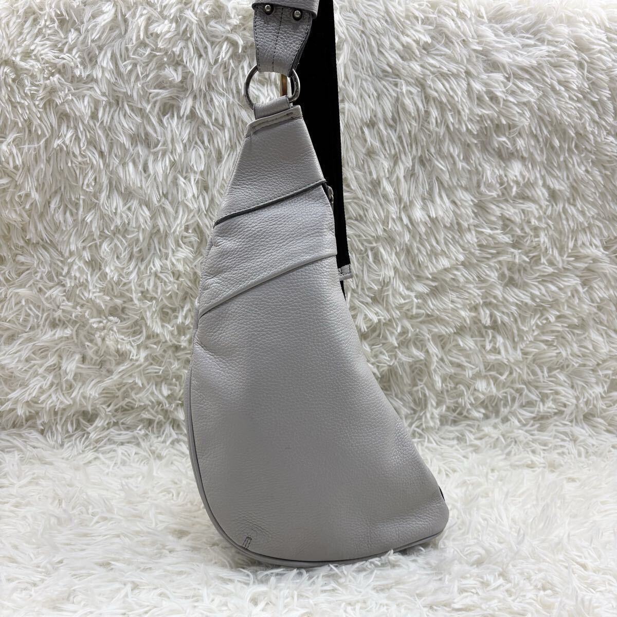- L.E.D BITES エルイーディーバイツ 牛革 オールレザー ショルダーバッグ 斜め掛け ボディバッグ スリングパック グレー