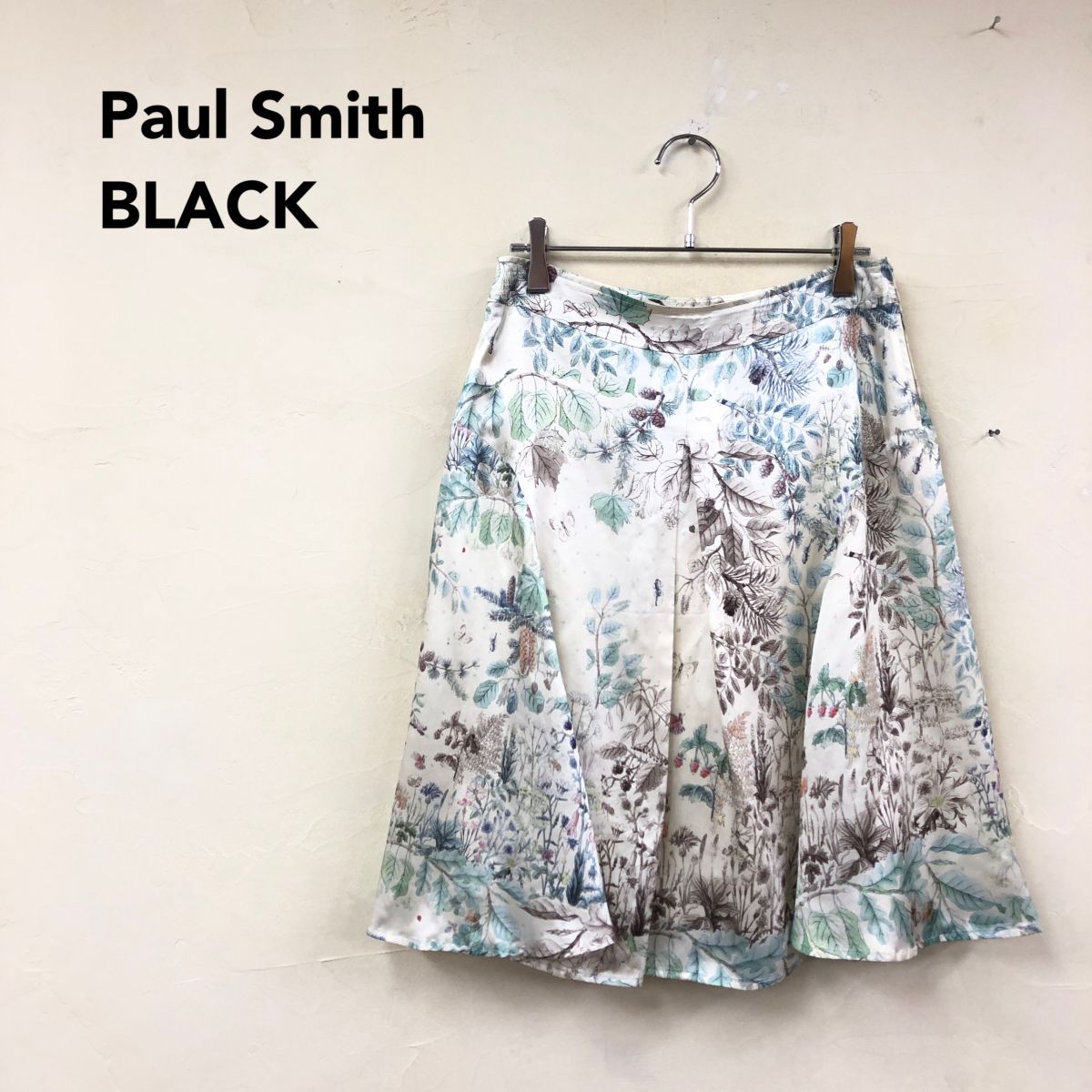 > 2H2423-K◆日本製 Paul Smith BLACK ポールスミスブラック ボックスプリーツスカート◆size38 オフ白 花柄 薄手 膝丈 キレイめカジュアル