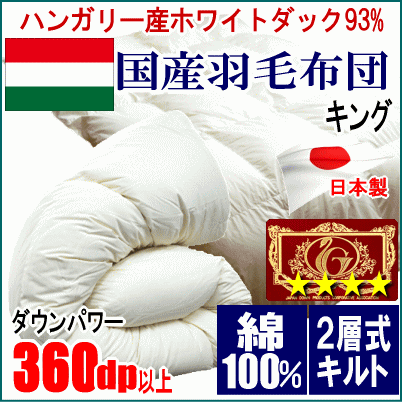 - 羽毛布団 キング ハンガリー産ホワイトダックダウン 93% エクセルゴールラベル 二層キルト ツインキルト 超長綿 綿100% 日本