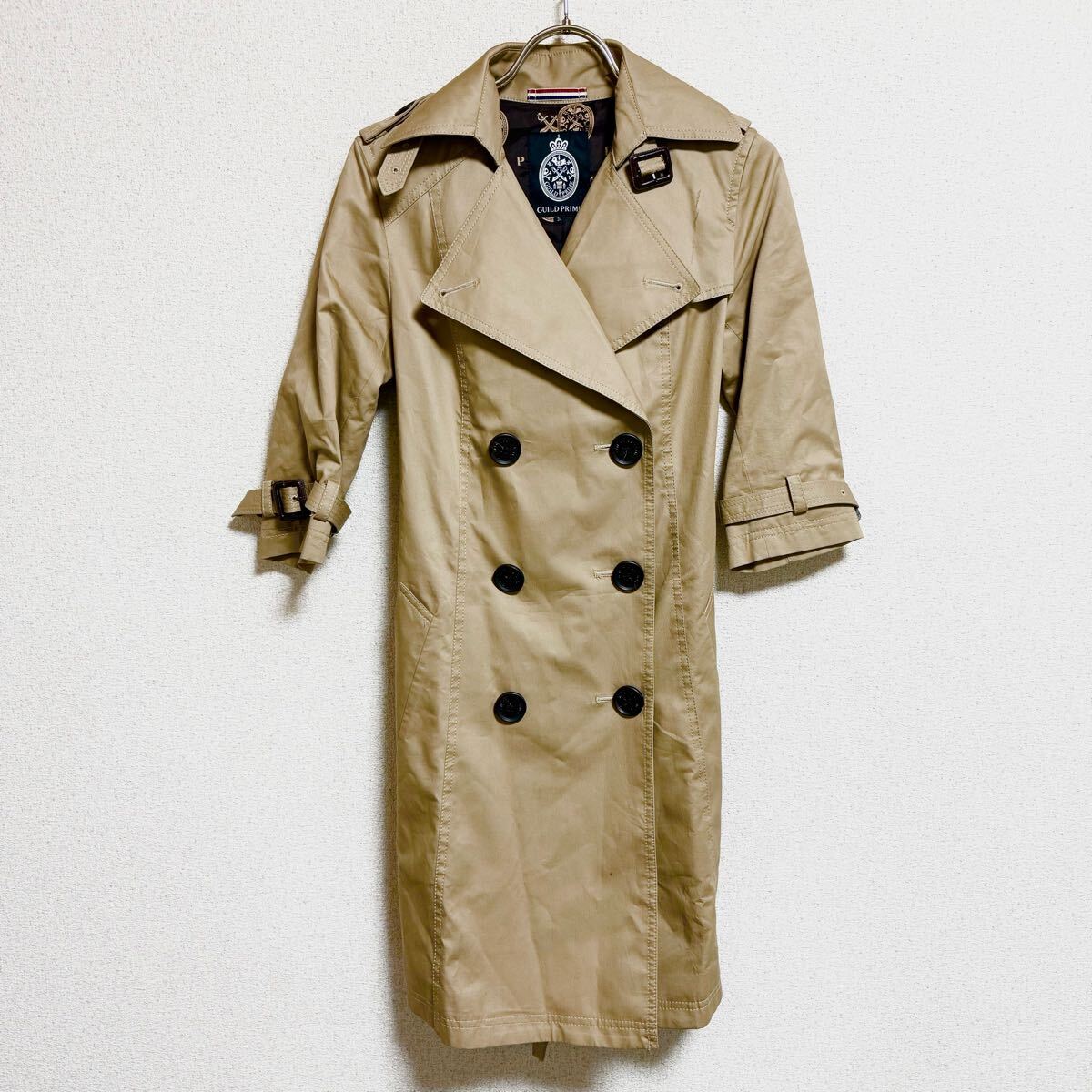 - GUILD PRIME ギルドプライム トレンチコート スプリングコート ベルティコート ダブルコート ベージュ レディース サイズ 34 *AO