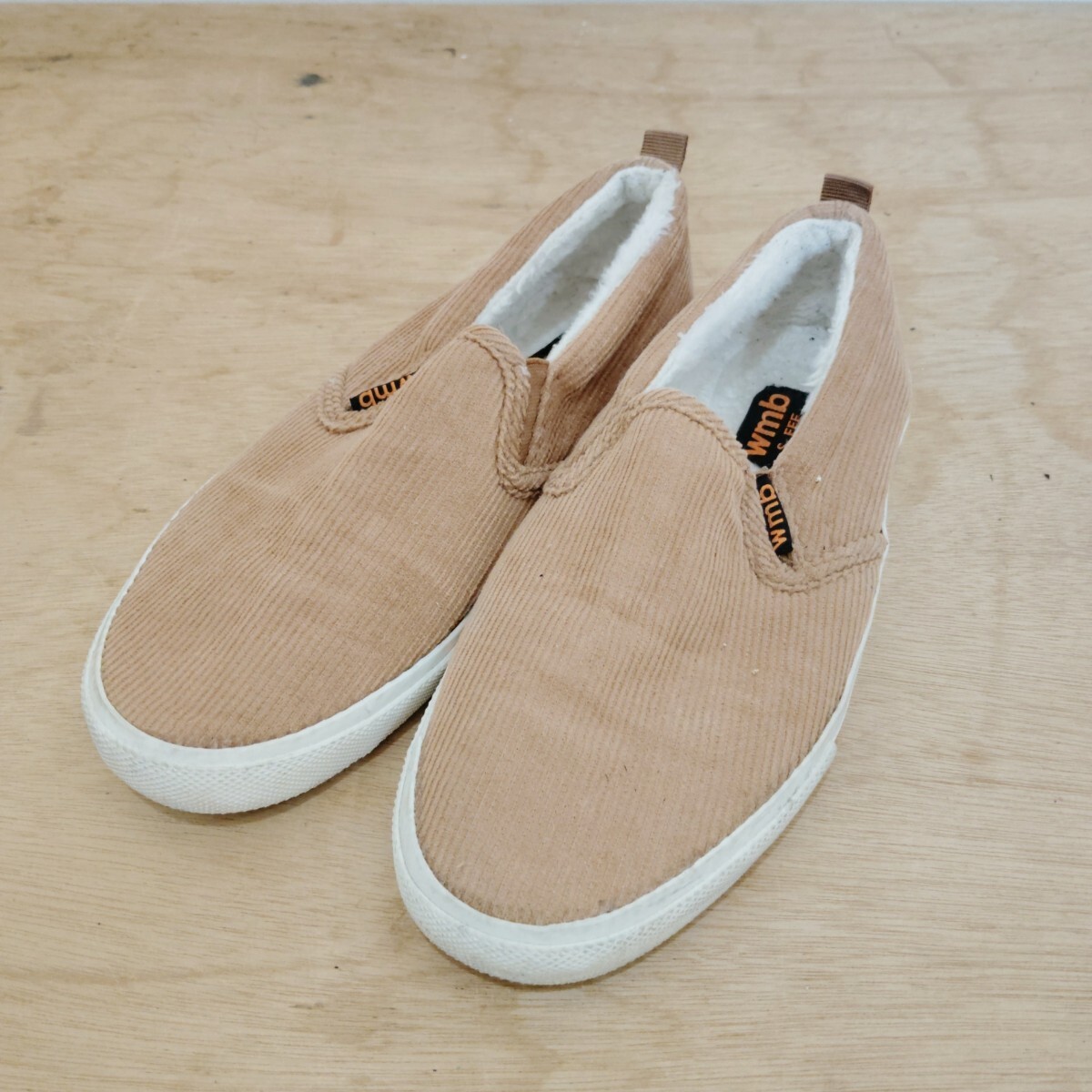 > ワークマン wmb スリッポン Sサイズ 約22.5cm 幅広 コーデュロイ キャメル色 ボア レディース 靴