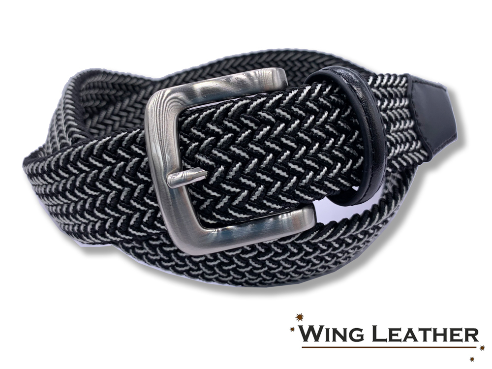 > 新品 ゴムメッシュベルト カジュアル ゴルフ 本革 伸縮 男女兼用 メンズ レディース ブラック ホワイト 固定サイズ GTM008 BK-WH