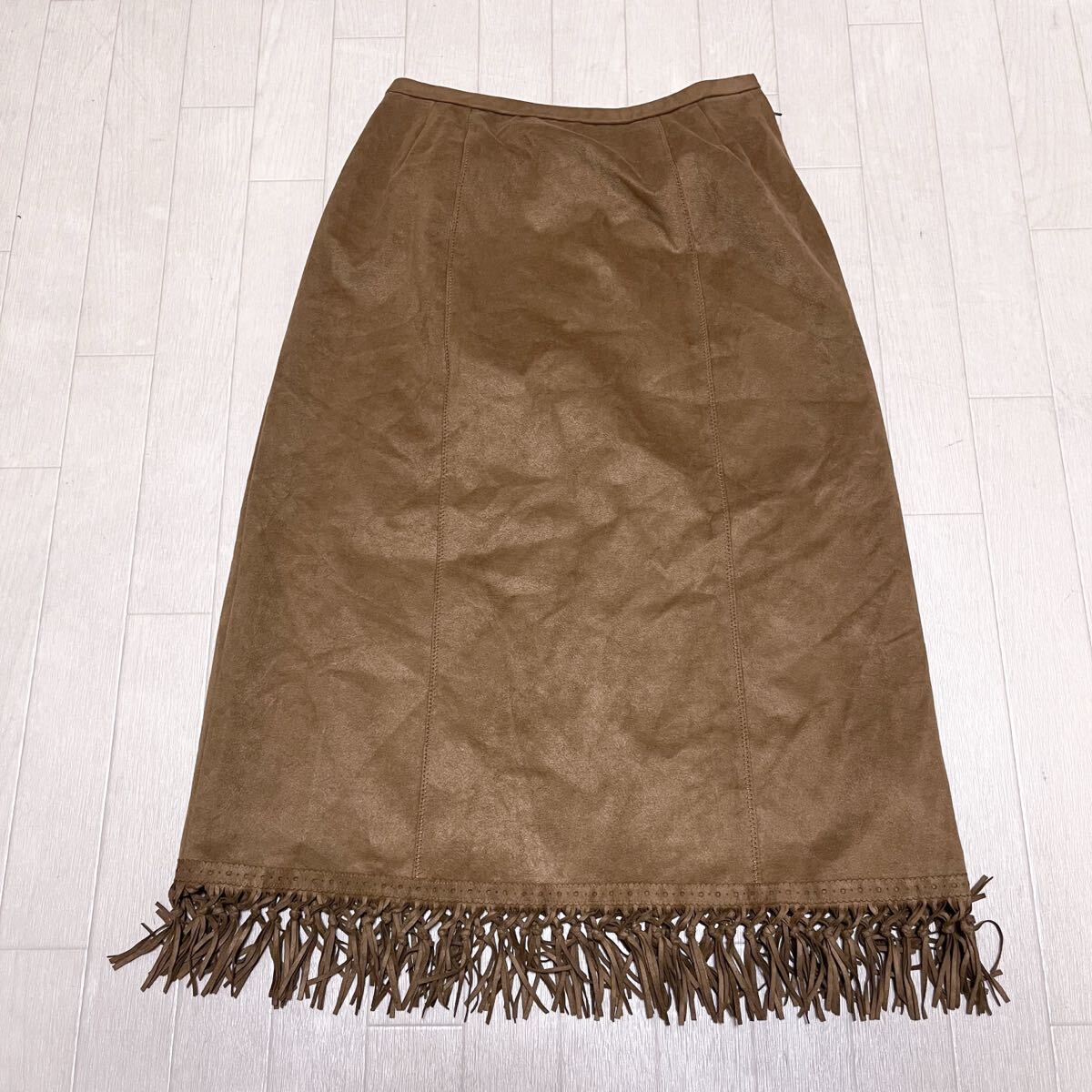 > 和827★ Leilian レリアン タイトスカート ロングスカート フリンジ 日本製 9 ベージュ レディース
