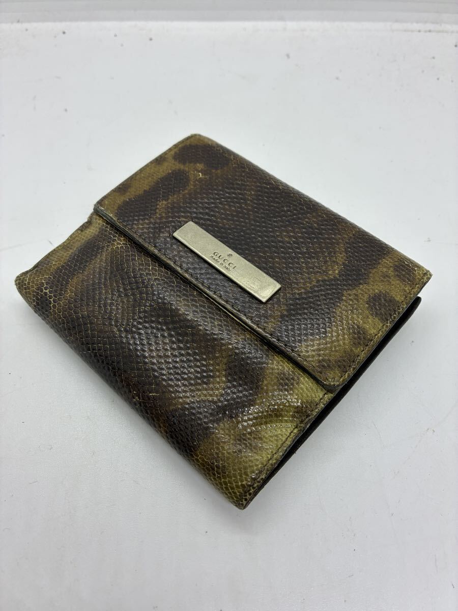 - 8:2 レア グッチ gucci 二つ折り 財布 リザード トカゲ革
