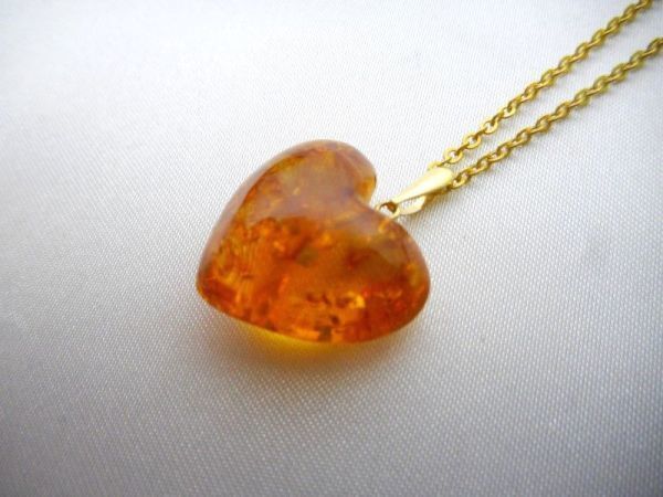 - K18 琥珀 アンバー ペンダントトップ ハート M-020
