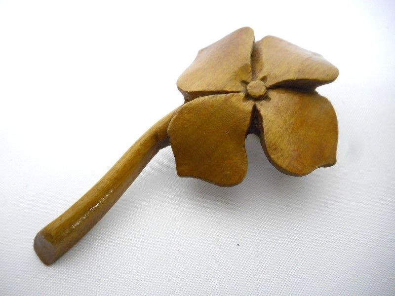 - ブローチ 木製 四つ葉 ブラウン M-158