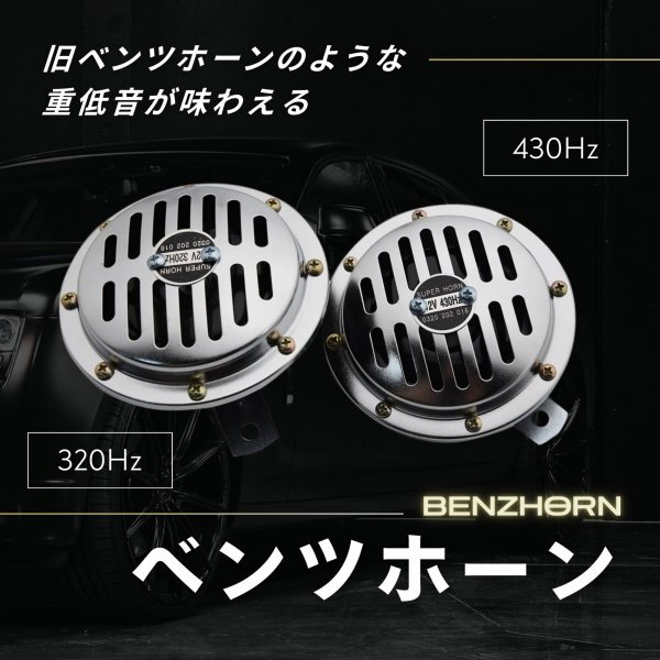 - ベンツホーン 12V 320Hz 430Hz 2個セット 車 クラクション カスタム シルバー 人気 ホーン インテリア 汎用 ドレスアップ スーパーホーン